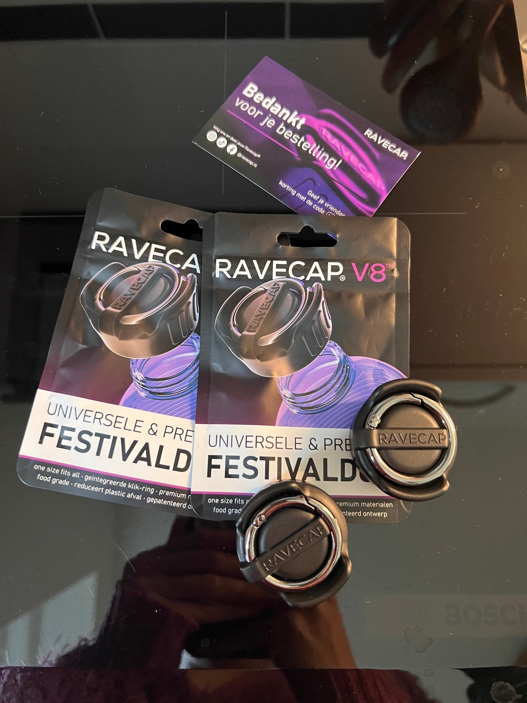 Vous avez oublié votre Ravecap ? Impossible ! Rangez-le avec l'anneau intégré comme porte-clés.